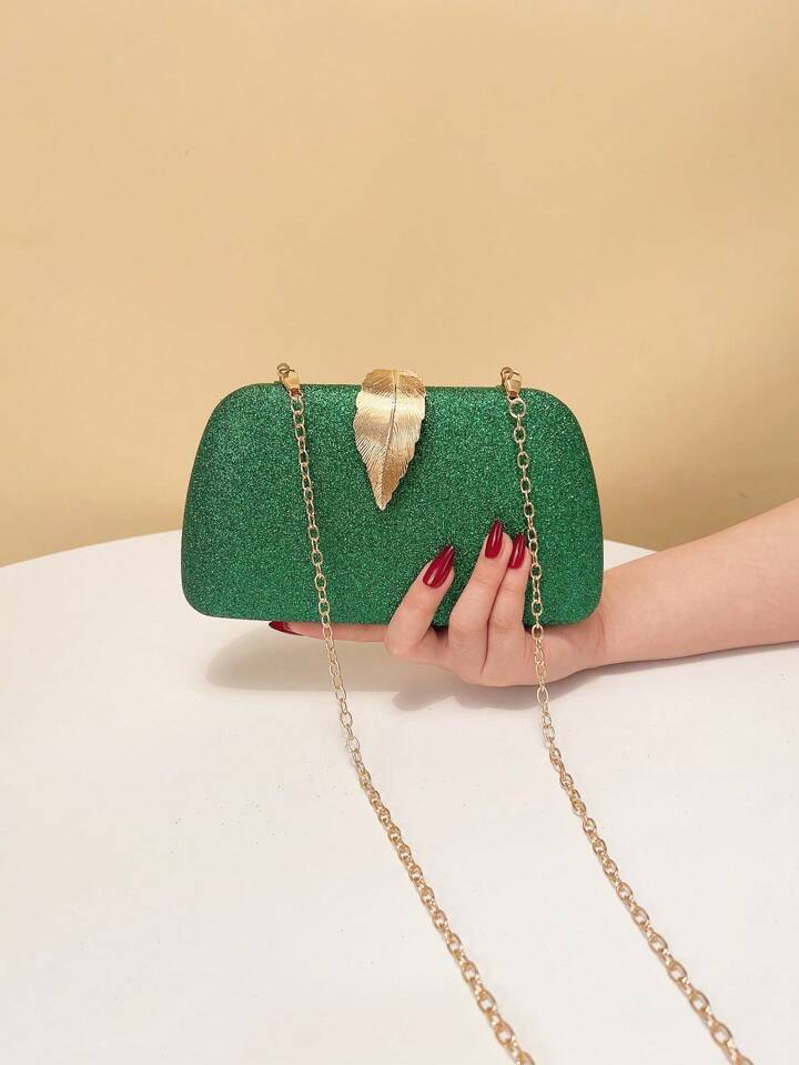 Green Gold Metal Leaf Evening Purse