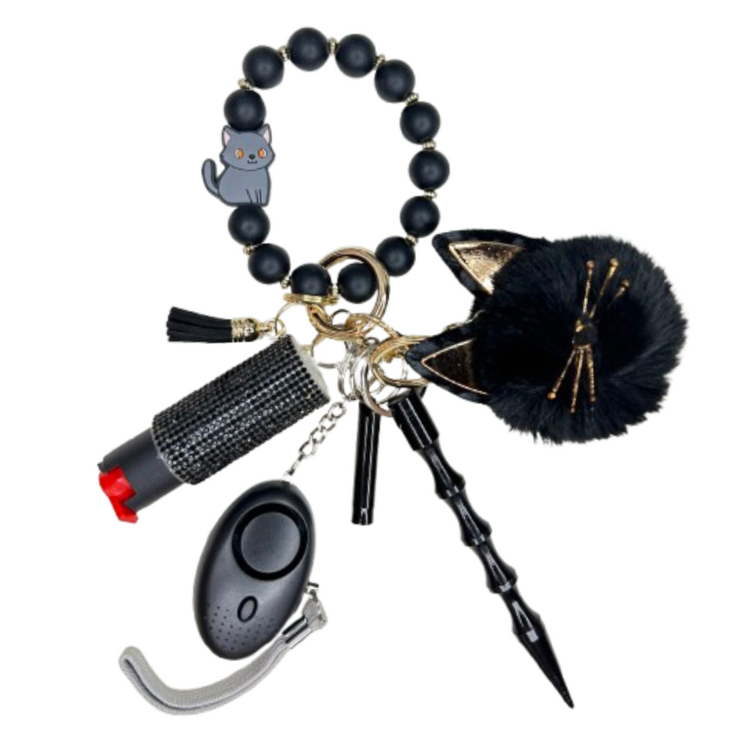 Black Cat Beaded Self Defense Keychain